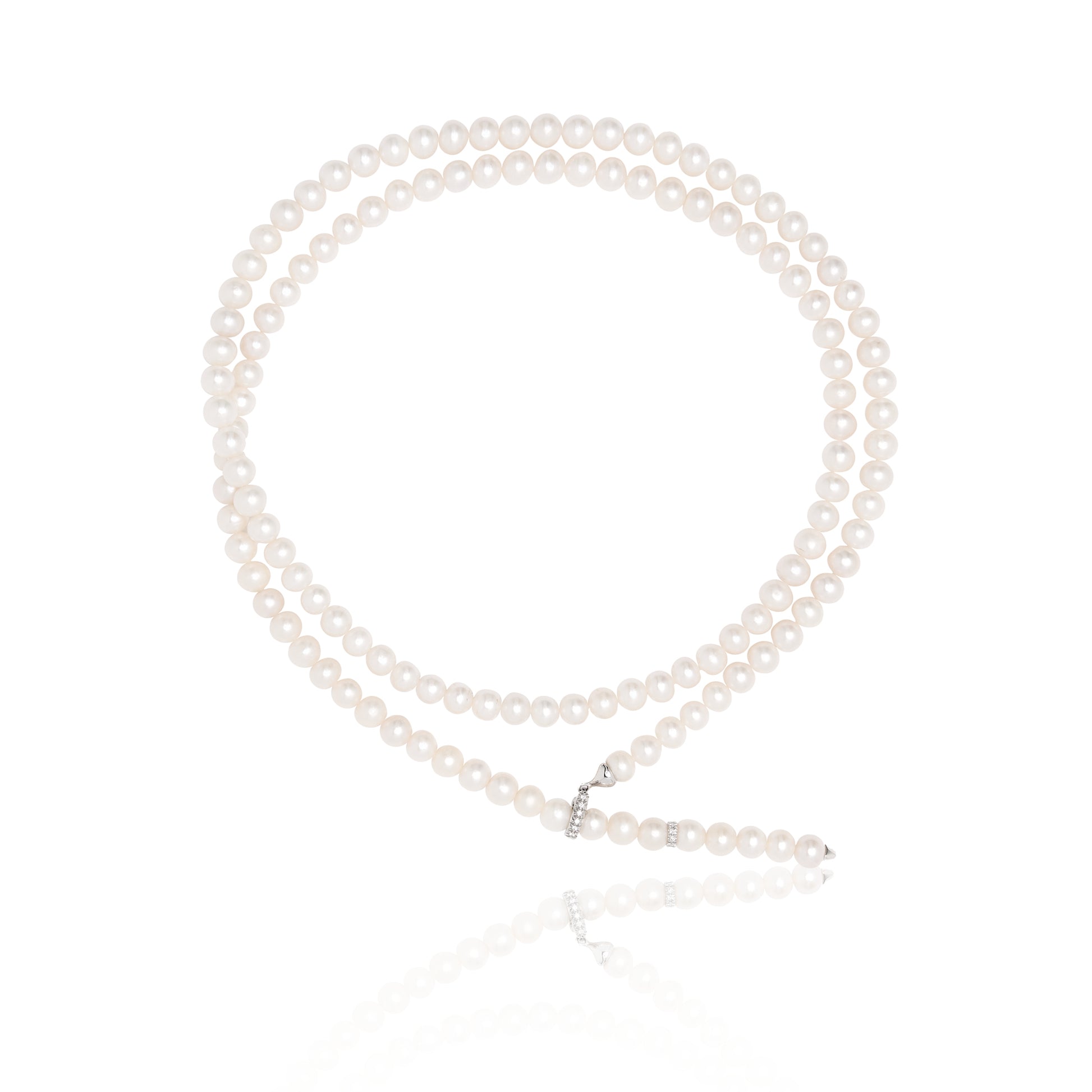 - Material: Perle naturale 7 mm, accesoriu aur alb 18k cu diamante naturale/0.095 ct, sistem închidere aur alb 18k cu diamante naturale/0.039 ct